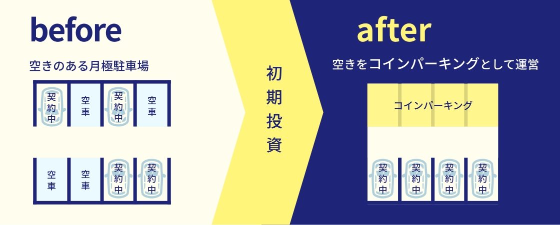 周辺店舗へのサービス提携や月極との併用などで、駐車場売上とは別の売上も見込めます。